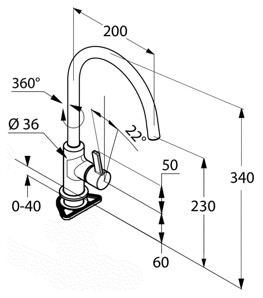 Eengreepsmengkraan. Met zwenkbare uitloop, zijdelingse hendel, keramisch binnenwerk en laminaire straalregelaar.