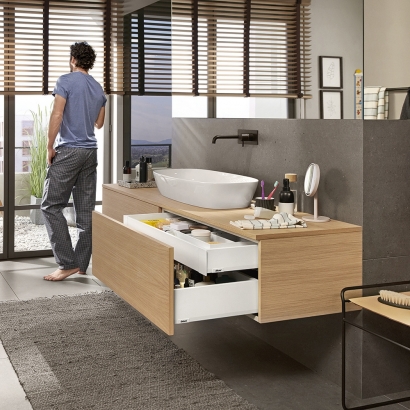 De doordachte constructie van MERIVOBOX maakt het mogelijk om het te integreren in uiteenlopende toepassingen, van keukenlades tot kledingkasten en bureauladen. De eenvoudige verwerking maakt het ook een favoriet bij ontwerpers en meubelmakers die waarde hechten aan efficiëntie en gebruiksgemak.