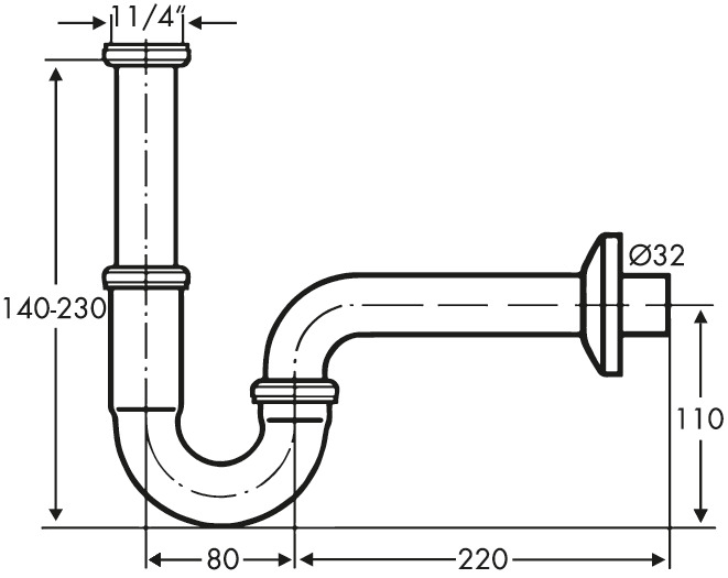 Buisgeurafsluiting 4, Sifon, 1 ¼” x 1 ¼”
