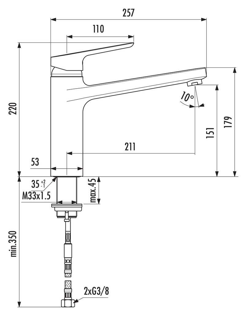 Eengreepsmengkraan. Met zwenkbare gietuitloop, keramisch binnenwerk, en ECO-functie.
