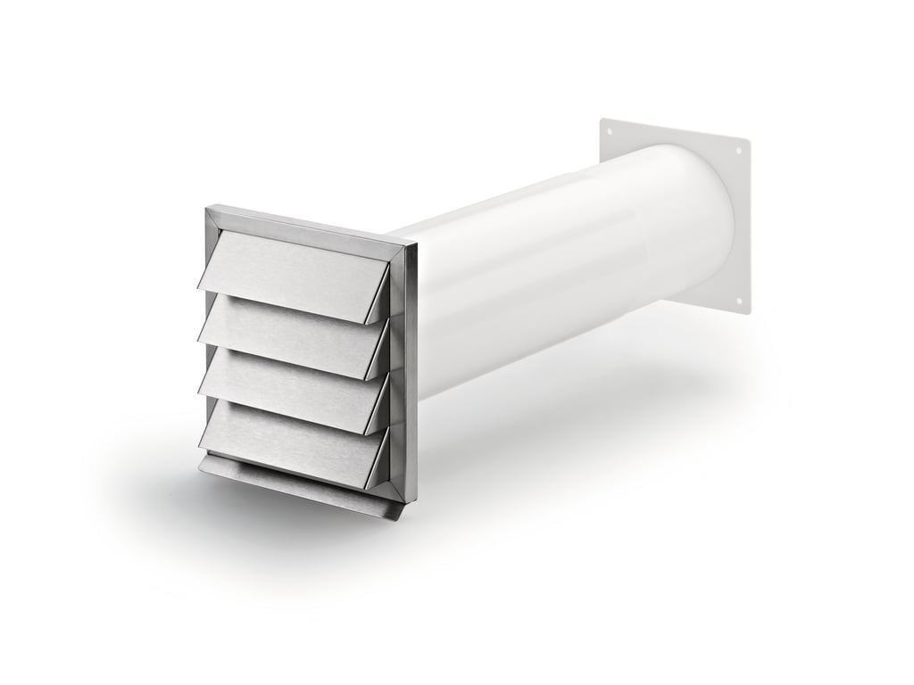Compair Flow 125 Klima-E 125 muurdoorvoerunit, buitenrooster, wit/roestvrij staal