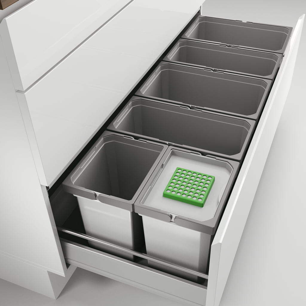 Voor montage op voorhanden uittreksystemen. Met antislip-inlegmat, biologisch deksel en compleet deksel vaststaand.