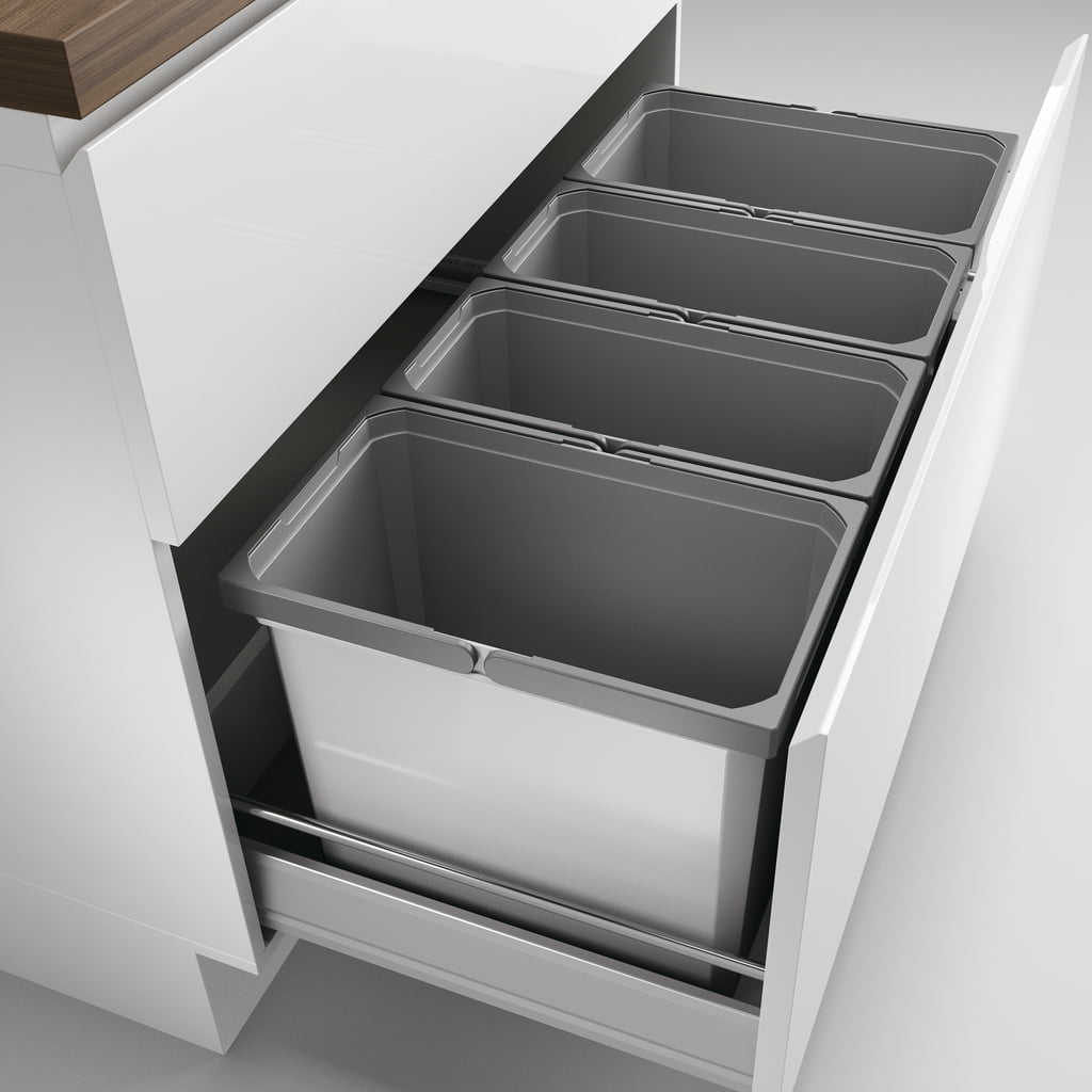 Het Naber Cox® Box 350 S/1000-4 afvalsysteem is ook toepasbaar in alle merken keukens. U kunt de systemen eenvoudig plaatsen in laden van Blum, Grass of Hettich. Deze ladesystemen kunt u ook vinden in 99% van alle keukenmerken.