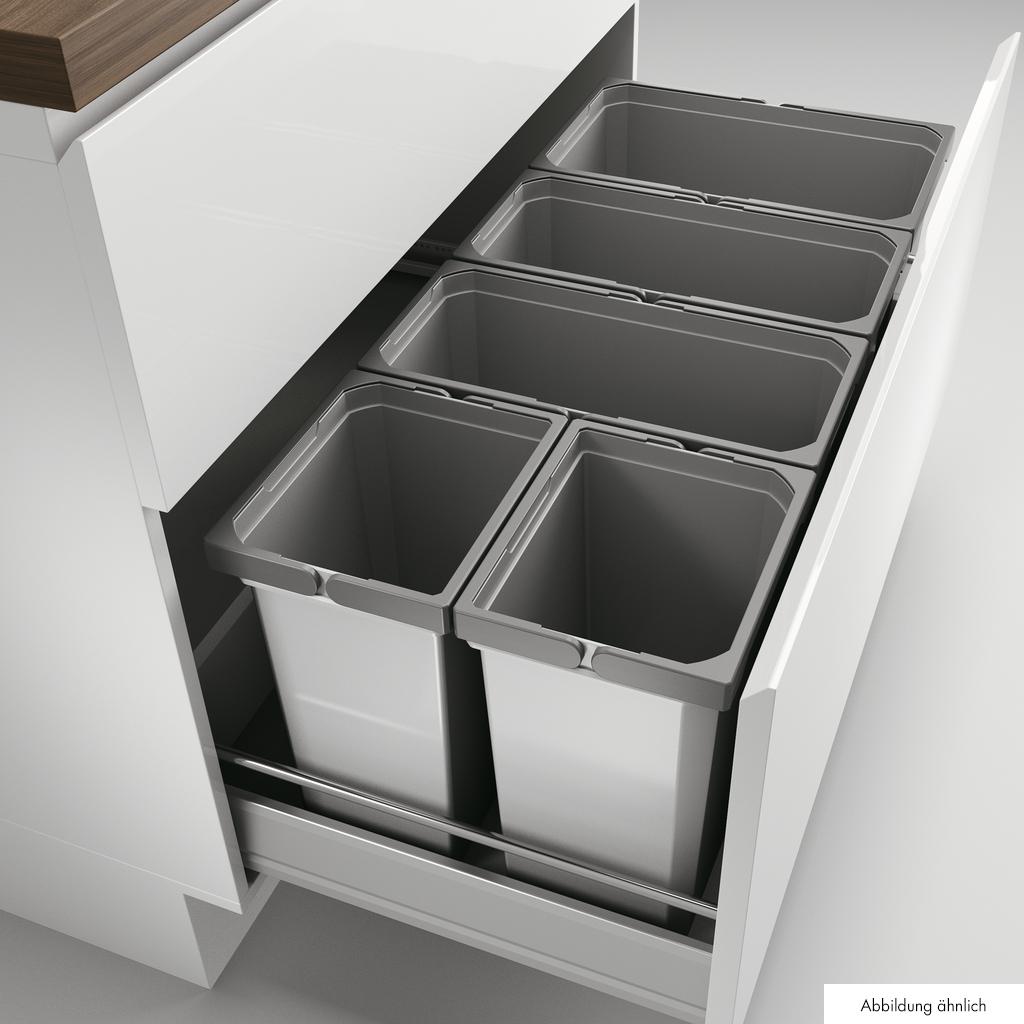 Met het Cox® BOX afvalsysteem koopt u een complete set stevige afvalemmers. Deze losse afvalemmers zijn voorzien van neerklapbare hengsels. In de Cox® BOX afvalemmers kunt u ook gebruik maken van afvalzakken. In de set is ook een verwijderbare inlegmat aanwezig die eenvoudig reinigbaar is. De kunststof inlegmat zorgt er ook voor dat de emmers niet schuiven in de keukenlade. Tot slot is het afvalsysteem uitgevoerd met een stevige, metalen deksel die de lade afsluit over de gehele kastbreedte.