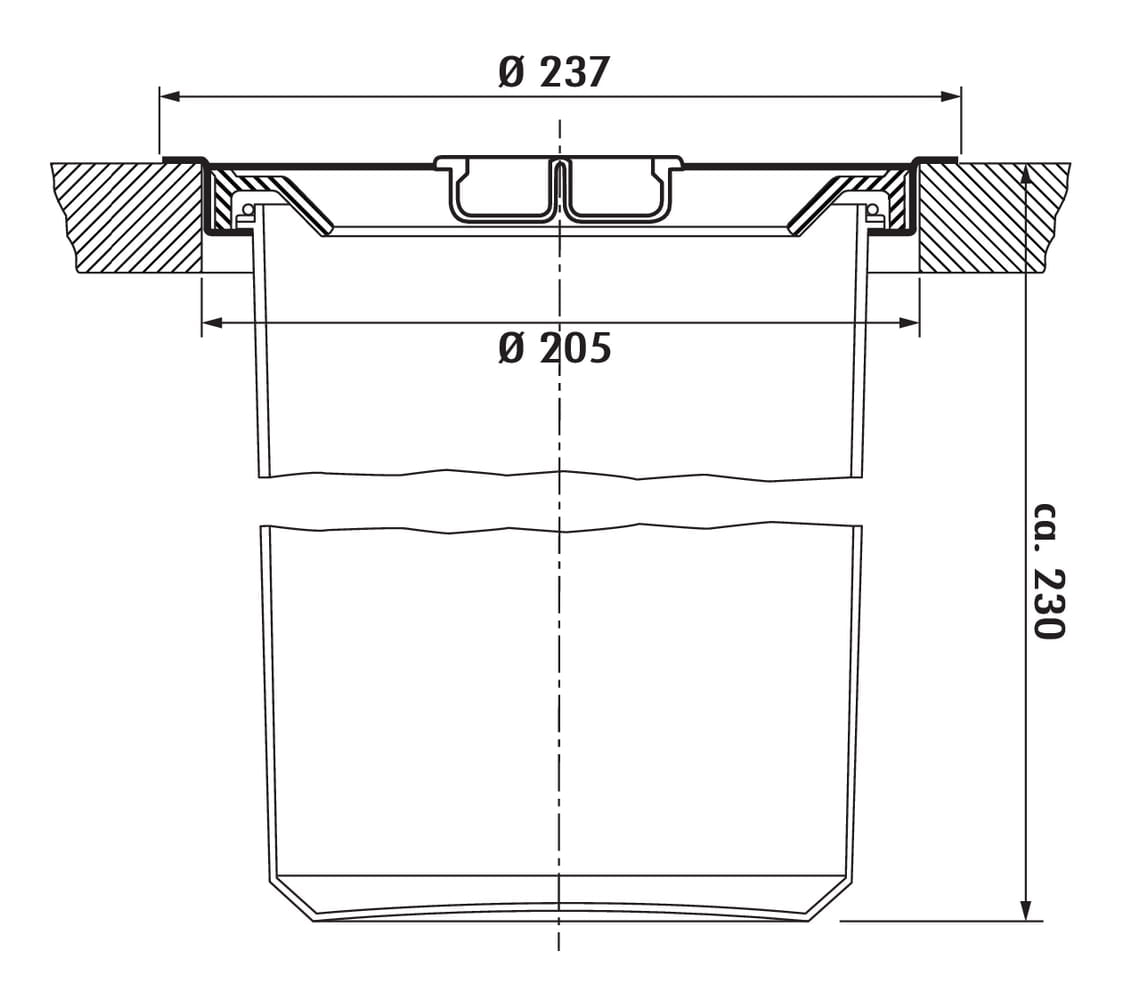 Snel en klaar om te grijpen en direct in het werkblad ingebouwd. Ook geschikt voor vlakbouw, inbouwmaten-⌀: 205 mm, buiten-⌀: 237 mm, Inhoud: 5 liter