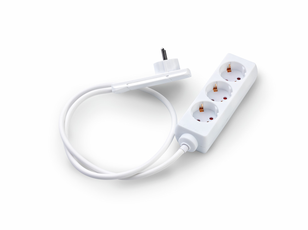 Drievoudige tafelcontactdoos met vlakke stekker, Contactdooselement, wit