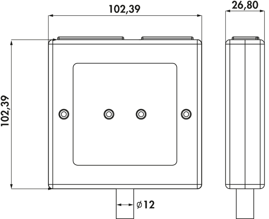 Technische gegevens: — ingangsspanning 400 V — uitgangsspanning 4-polig (2-fasig) 400 V — uitgangsspanning 3-polig (1-fasig) 230 V — stroom max. 20 A — gekeurd volgens IEC 60670-1 (DIN EN 60670-1), IEC 60670-22 (DIN EN 60670-22) en IEC 61535 (DIN EN 61535) — materiaal: zelfblussend volgens UL 94 (FR). Ingeval van een brand zal deze kunststof na het verwijderen van de ontstekingsbron binnen de kortst mogelijke tijdspanne stoppen met branden (zelfblussend). — opbouw: de behuizing is dichtgeschroefd en mag door onbevoegde personen niet geopend worden — afmetingen van de box: 102 x 105 x 27 mm (H x B x L) — afdichtingsnorm voor het complete product IP20 — materiaal: kunststofBerekening van de aansluitwaarde van de energiebox: — totale aansluitwaarde fornuiscontactdoos: 11 KW (bij symmetrische indeling) — kookplaatvermogen (4-polige aansluiting): max. 7360 W (2-fasig) — bakovenvermogen (3-polige aansluiting): max. 3680 W (1-fasig)Van het gebruik van een meervoudige contactdoos voor de aansluiting van meerdere stroomafnemers via de schaalkoppeling dient om veiligheidsredenen te worden afgezien.Is er op de inductiekookplaat reeds een kabel vast aangesloten, dan dient deze beslist te worden gebruikt. In dit geval moet de 4-polige stekker van de voorgemonteerde kabel van de energiebox losgemaakt en aan de aanwezige kabel van de inductiekookplaat aangebracht worden.