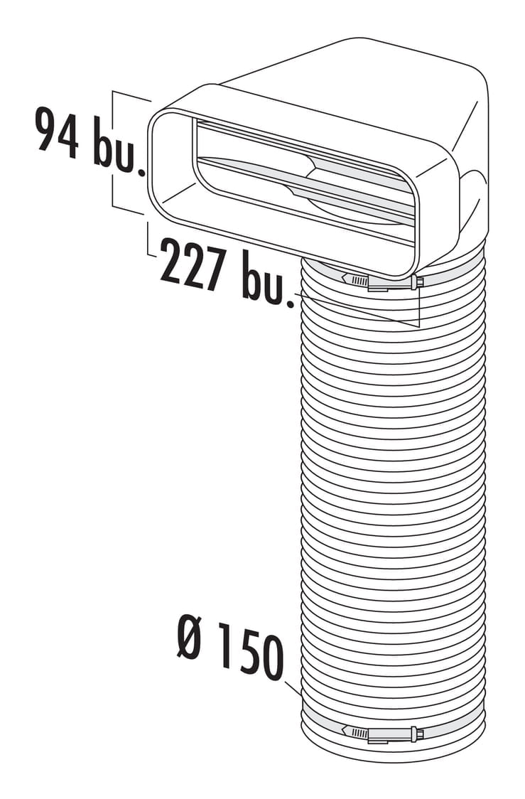 Voor een optimale doorstroming van de luchtstroom adviseren wij u om voor de set met buis te kiezen (artikelnr. F-UR). Als dat niet mogelijk is dan kiest u voor deze set met de flexibele luchtslang.