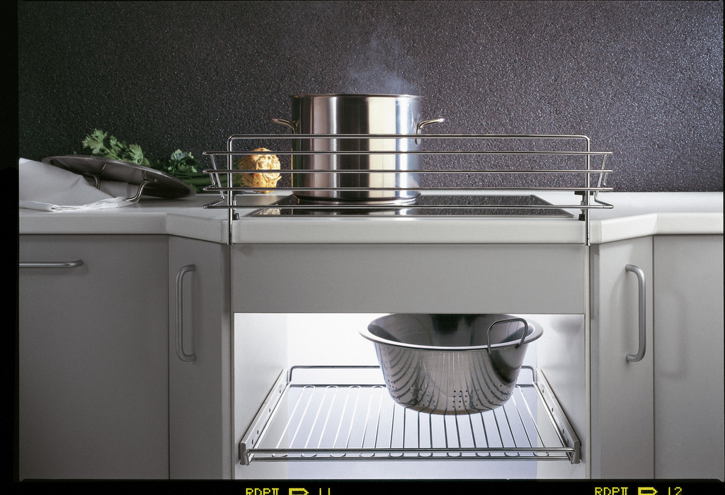 Chroom. Voor de eenvoudige montage aan het werkblad voor een 600 mm of 900 mm kookveld. — 175 x 140 mm (H x D)