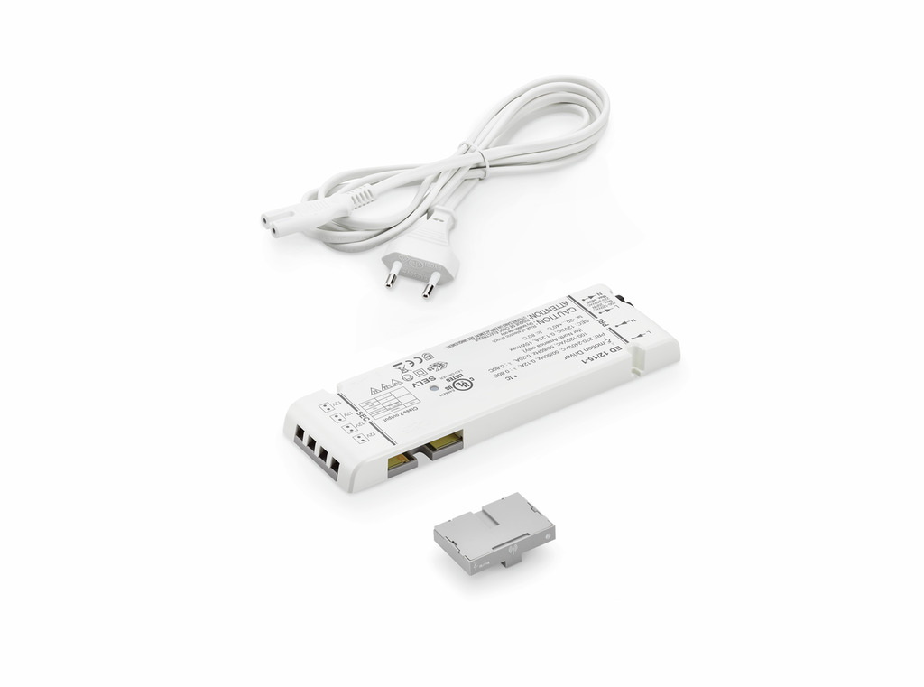 De functionele FW-converter voor kleurwissel-lichtsystemen. — wit — 12 VDC — max. 36 watt belasting per steekplaats aan de converter — 2000 mm netsnoer — schakelbaar via Bluetooth-app (module 3) of via optioneel verkrijgbare afstandsbediening