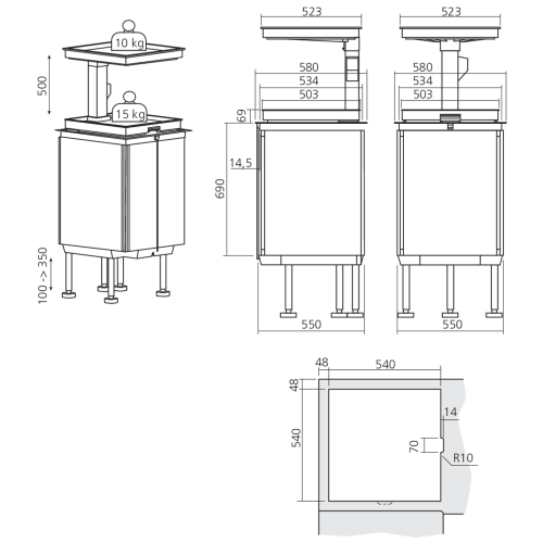 De onderste plateau kan naar voren bewegen op het werkblad om de toegang te vergemakkelijken, zodra de beweging stopt, zakt hij af voor meer stabilisatie.