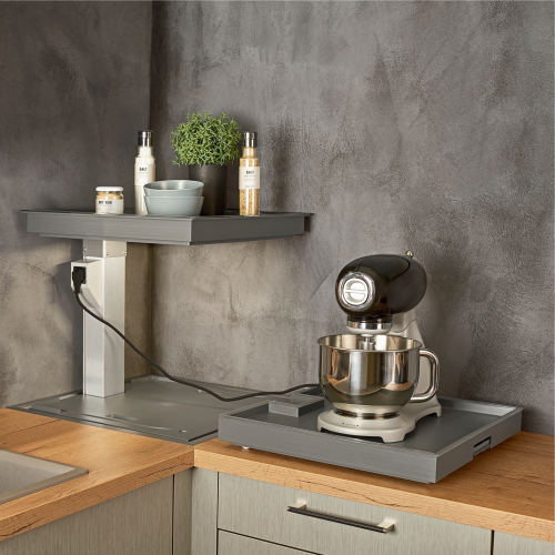 Gemotoriseerde hoekset QANTO PULL-OUT met ledverlichting en stopcontact, Antracietgrijs