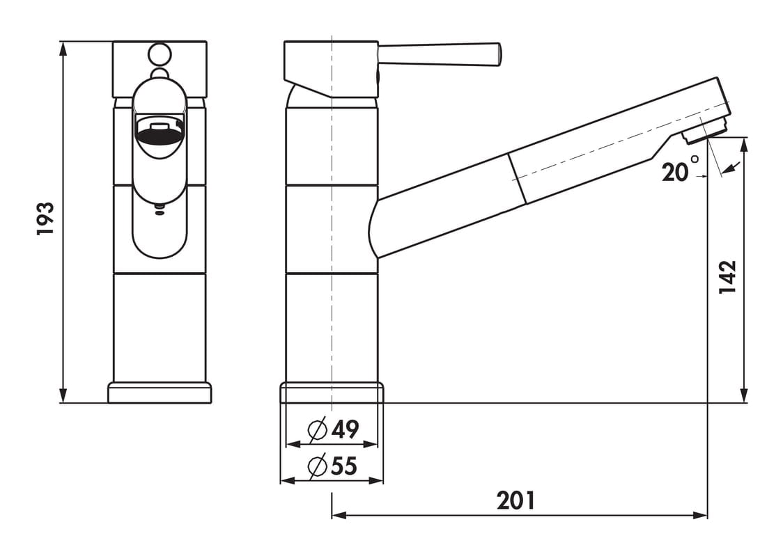 Met zwenk-/uittrekbare uitloop en keramisch binnenwerk, zwenkbereik 90°, boorgat ⌀ 35 mm