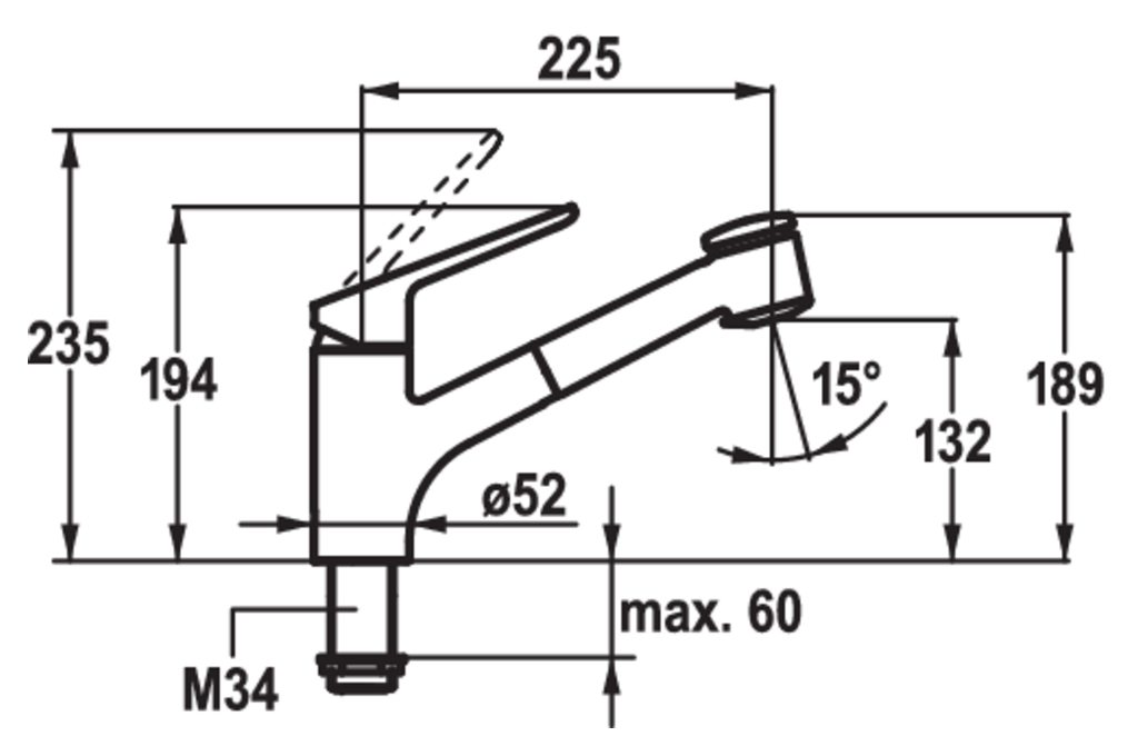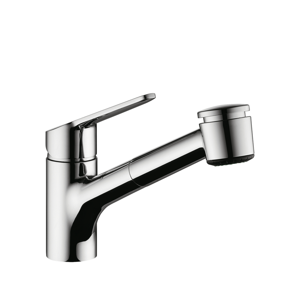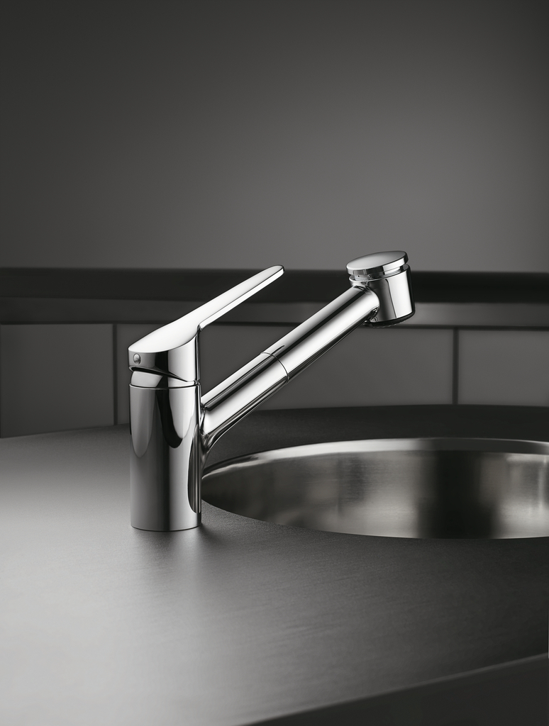 Eengreepsmengkraan. Met zwenk-/uittrekbare slangdouche (straal/douche omschakelbaar) en keramisch binnenwerk.