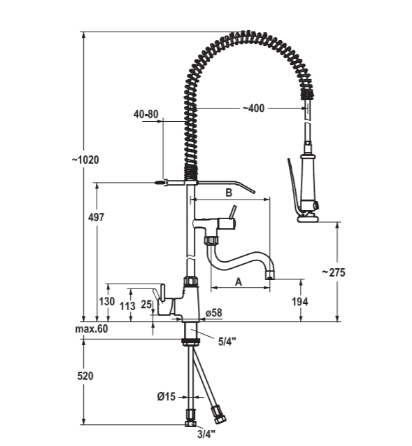 KWC Gastro kraan, Eenhendel keukenmengkraan, Chroom