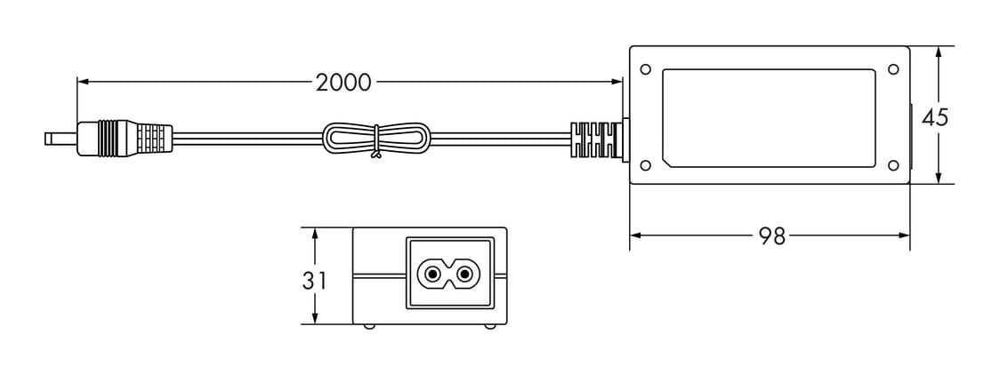 36 watt, 24 V DC, 2000 mm netsnoer, aansluitwaarden van de afzonderlijke lampen dienen in acht te worden genomen (watt)