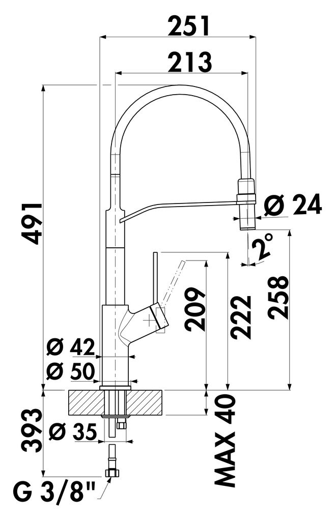 Product: Mio 5, Eengreepsmengkraan, Zwart mat, hoogdruk