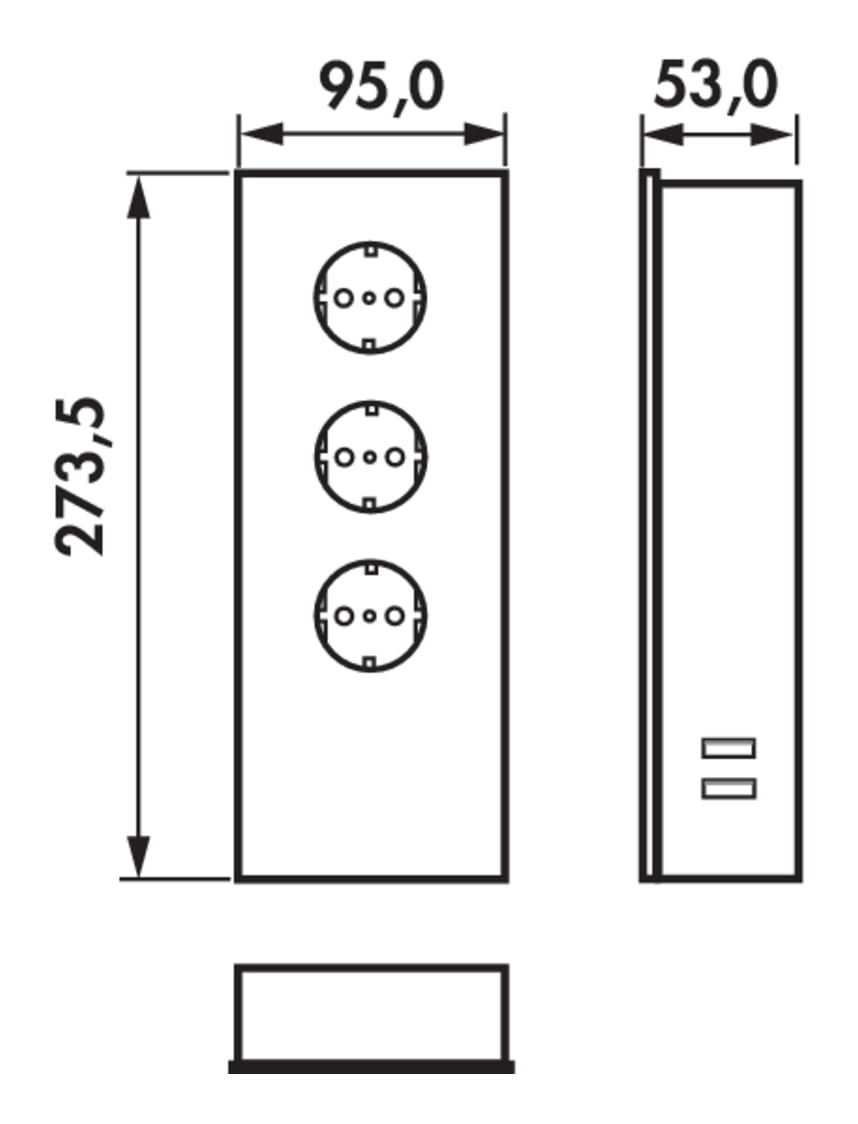 — 273,5 x 95 x 56 mm (H x B x D)