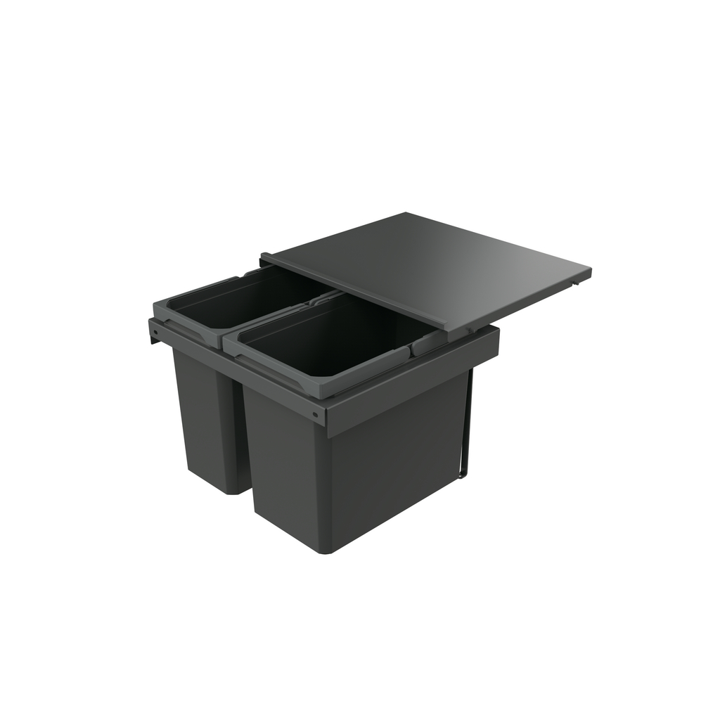 Met het Cox® Stand-UP afvalsysteem koopt u een complete set stevige afvalemmers. Deze losse afvalemmers zijn voorzien van neerklapbare hengsels. In de Cox® Stand-UP afvalemmers kunt u ook gebruik maken van afvalzakken. In de set is ook een verwijderbare inlegmat aanwezig die eenvoudig reinigbaar is. De kunststof inlegmat zorgt er ook voor dat de emmers niet schuiven in de keukenlade. Tot slot is het afvalsysteem uitgevoerd met een stevige, metalen deksel die de lade afsluit over de gehele kastbreedte.
