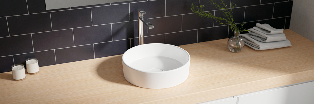 Product: Patera 40, Opzet-wastafel rond, Kleur Wit Glanzend