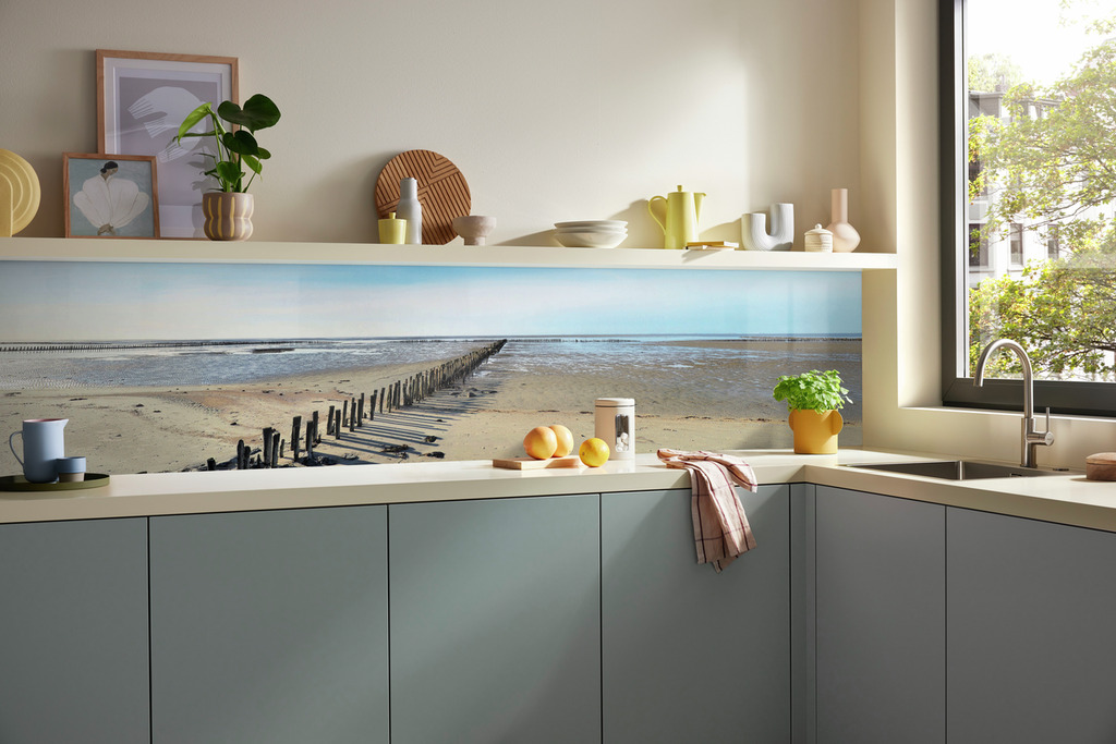 Nisachterwand. — aluminium composiet- of acrylglasplaat — UV-bestendige lamineerfolie — H max. 700 mm — L max. 3050 mm — speciale maten op aanvraagBij formaten buiten de zijkantverhouding 1:4 is een gesprek over het beeldfragment vereist.