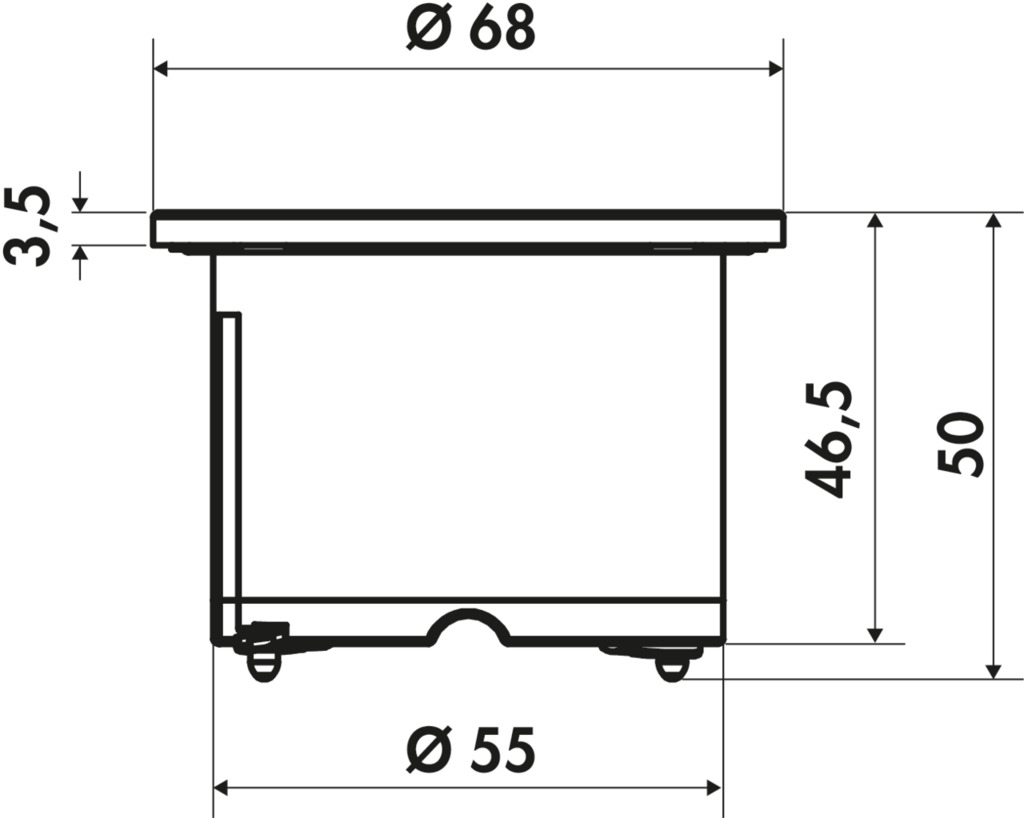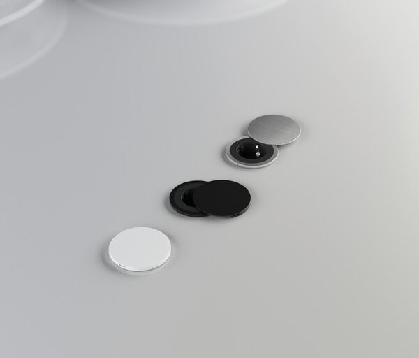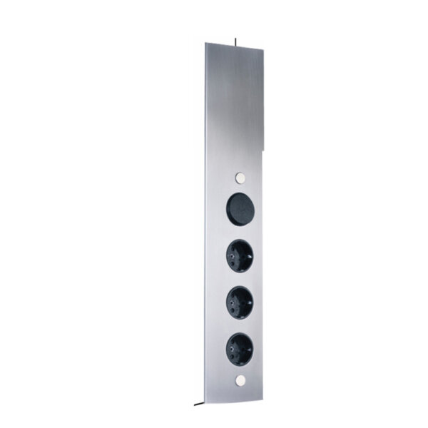 Contactdooselement, 1-voudig. Sierringen roestvrij staalkleurig, zwart en wit. Voor inbouw in werkblad, frontpaneel of zijwand. — boor Ø 56 mm — inbouwdiepte ca. 45 mm — 2000 mm netsnoer, veiligheidsstekker los bijgevoegd (permanent geïnstalleerd in Zwitserse versie) — kabeluitlaat achteraan