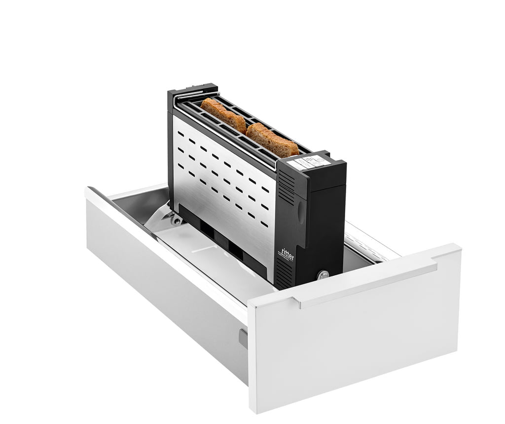 Toaster inbouwsysteem voor montage in schuiflades vanaf 300 mm corpusbreedte. Voorwaarde: Vrije binnenmaat >178 mm, afmetingen in ingeklapte toestand: H 75 x B 178 x D 400 mm, opstelmechanisme van staal, automatische uitschakeling, wanneer de toaster wordt ingeklapt, roostergraadinstelling met LED indicatie, stop-toets, ontdooi- en opwarmfunctie, broodcentrering, element voor broodjes van roestvrij staal ge√⌀ntegreerd, warmtege√⌀soleerde behuizing van roestvrij staal, opvangvak voor kruimels kan in staande en liggende positie worden uitgenomen, toestel zonder gereedschap uit de lade voor reiniging demonteerbaar, 230/240 V, 900-950 watt, gewicht: 2 kg, 5 jaar garantie af fabriek (zie www. ritterwerk. de/garantie)