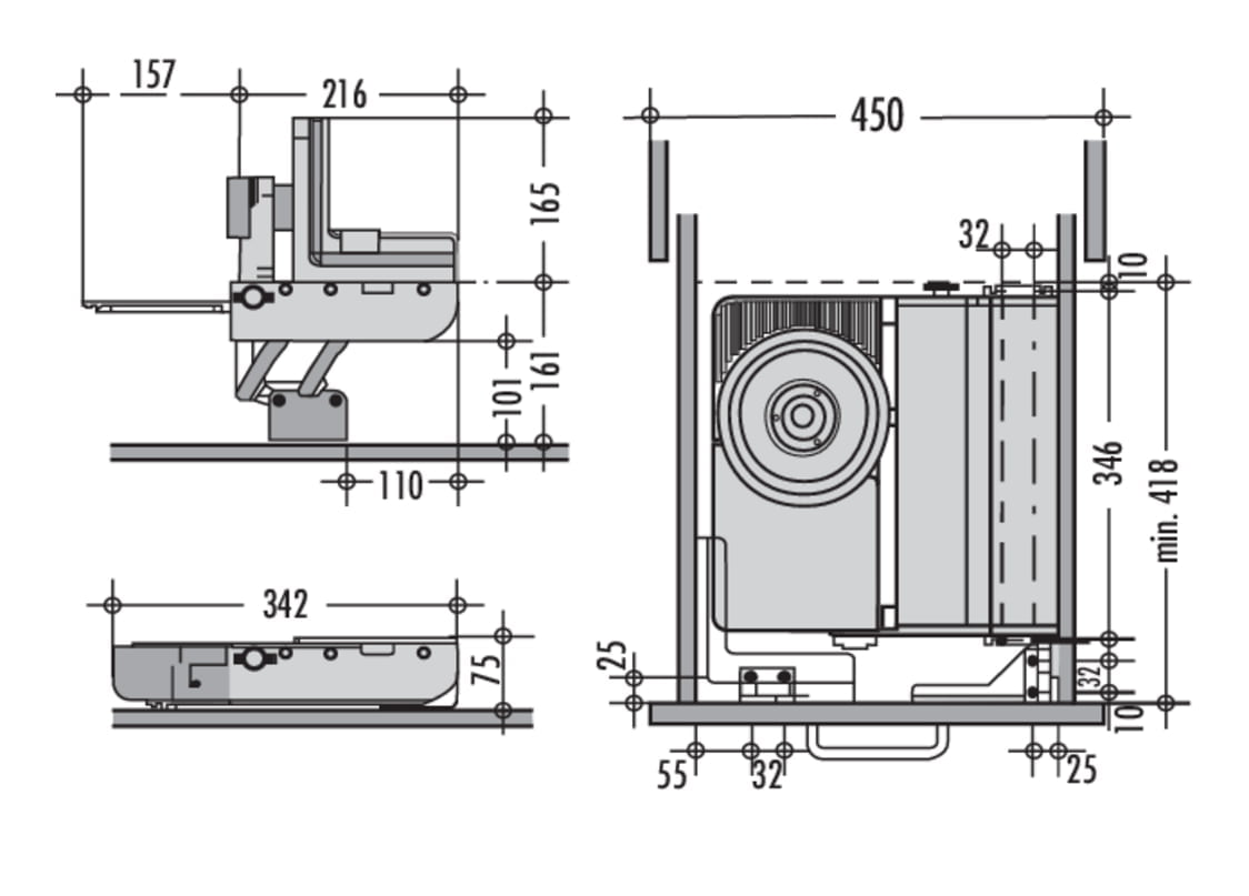 Voor montage in schuiflades vanaf 450 mm corpusbreedte. Voorwaarde: Vrije binnenmaat; >342 mm. Staat voor het werkblad. Afstand bodem van de schuiflade tot bovenkant van het werkblad: min. 116 mm, max. 161 mm, aandrijving: krachtige energiebesparingsmotor 230 V, 65 watt, veiligheids-, moment- en continuschakelaar, korte werking 5 minuten, metalen uitvoering, rond mes: gepolijst snede, ⌀ 170 mm, gegolfd geslepen. Het schaar-, hef- en opstelbeslag vergrendelt zelfstandig, snijdikteregeling: tot ca. 14 mm, inklapblokkering bij ingestelde snijdikte, maten: H 75 x B 342 x D 365 mm, gewicht: 4,1 kg, toebehoren: opvangschaal voor snijproduct van roestvrij staal, houder hoekvormig voor vingerbescherming en restenhouder, 5 jaar garantie af fabriek (zie www. ritterwerk. de/garantie)