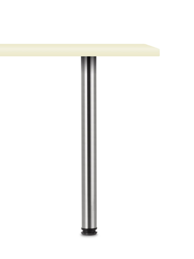 tafelpoot. Klassieke zuilvorm in beste en solide verwerking voor universele toepassing. Basisvlak is niet geschuurd en wordt dan overeenkomstig bekleed, buis-⌀ 60 mm, inkortbaar behalve roestvrij staalkleurig, hoogte 705 mm (vermeerderd met 30 mm hoogteregeling), draagvermogen ca. 150 kg