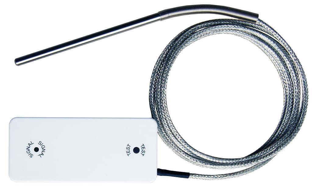 De radio-temperatuursensor is integreerbaar in het radiosysteem van de raamcontactschakelaar. Daarbij wordt via de temperatuur de bedrijfstoestand van de schoorsteen bewaakt. Alleen bij brandende schoorsteen moet er een raamopening gebeuren, terwijl de wasemkap actief is. Daardoor vervalt de strikte koppeling van actieve wasemkap en geopend raam. De temperatuursensor is geschikt voor montage in gesloten en droge woonkamers, type PT 1000, ⌀: 5 mm, lengte: 100 mm, temperatuurbereik: -50 – 500 °C, sensorkabel: 2000 mm, tot 450 °C