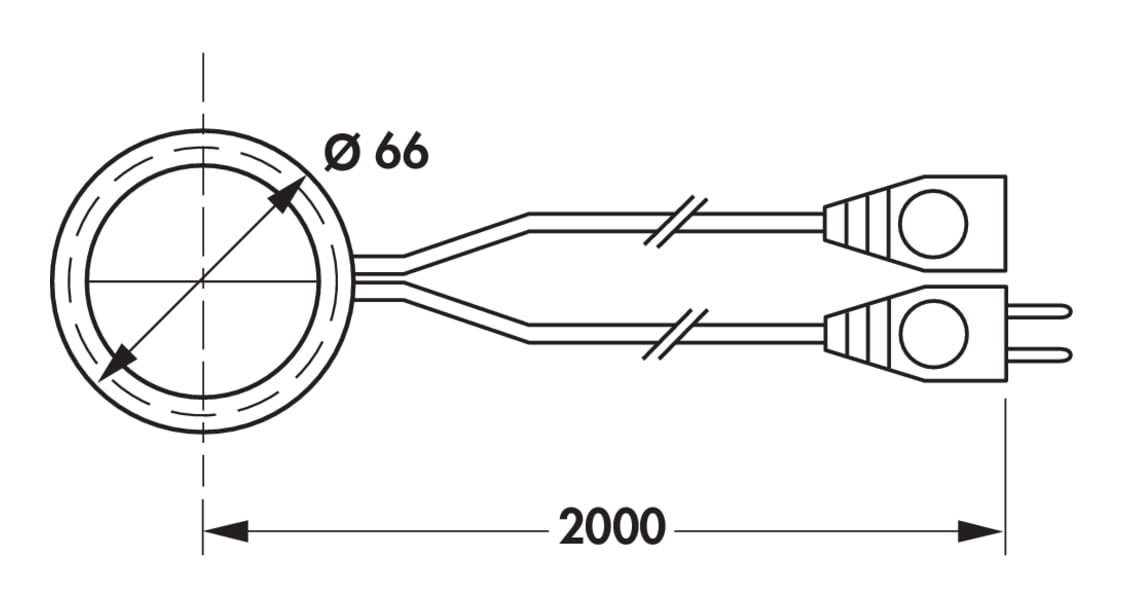 230 V, max. 2,5 A, ronde vorm, vlakke eurostekker en eurokoppeling, 2 x 2000 mm netsnoer