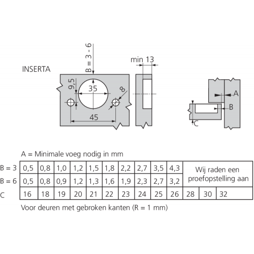 Diepte-instelling | +3 / -2 mm |