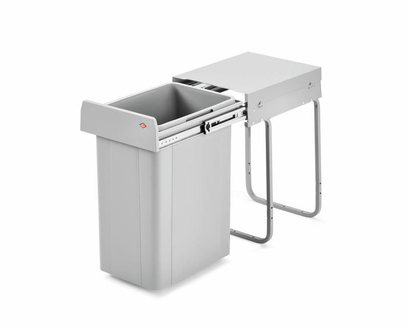 Het WESCO afvalscheidingssysteem is speciaal ontworpen voor draaideuren en maakt gebruik van een geavanceerde uittrektechnologie. Het model kan worden gekocht met een afvalvolume van 26 liter om aan je eigen wensen te voldoen. De individuele afvalbak is voorzien van verzonken handgrepen aan de randen om het afval er gemakkelijker uit te kunnen tillen voor verwijdering. De basisuitrusting omvat een algemeen deksel dat aan het frame is bevestigd en eenvoudig kan worden verwijderd om schoon te maken. De volledig uittrekbare loper met robuuste geleiderails kan met één hand worden bediend dankzij de greeplijst aan de voorkant. Het WESCO afvalscheidingssysteem is eenvoudig te installeren op de bodem van de kast.