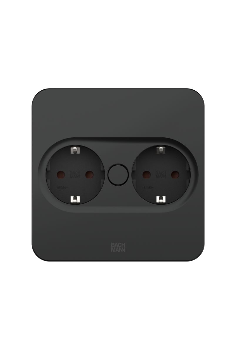 Product: Twist 2 Dubbele contactdoos, met veiligheidsstopcontacten, zwart vierkant