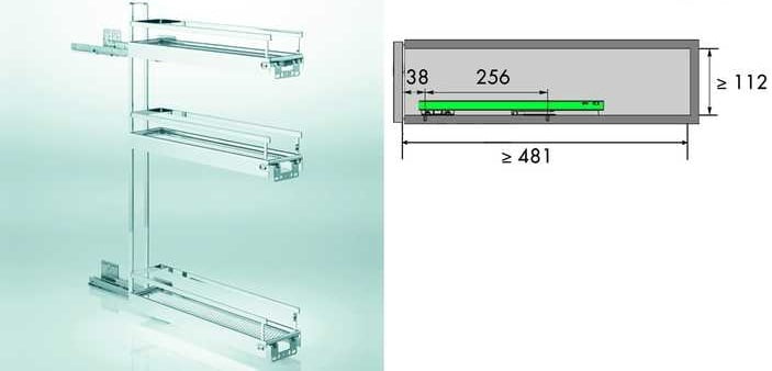 Kessebohmer Uittrekelement 3 niveaus voor kast 15cm breed STYLE