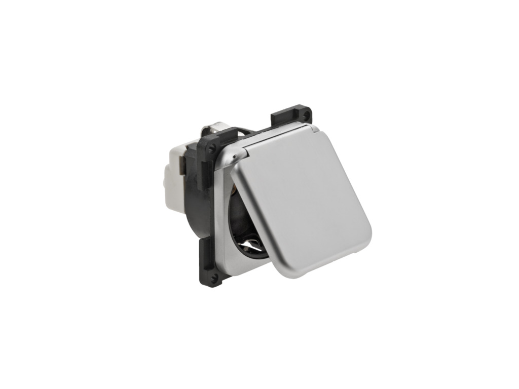 Veiligheidsstopcontact met klapdeksel, Contactdoos, zilverkleurig/zwart