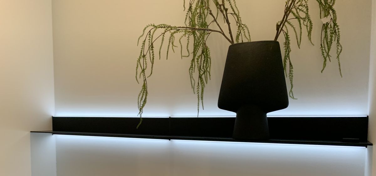 Fraai wandregaal met onder en bovenverlichting. 12V / 13.8W