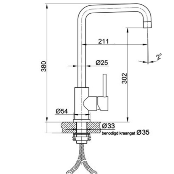 Lorreine Medway keukenkraan, Eenhendel keukenmengkraan, Rvs
