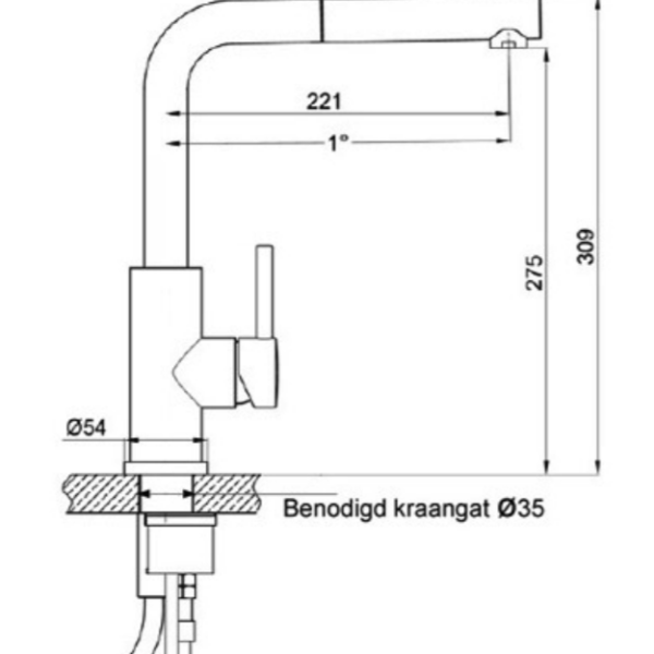 Lorreine Ribble keukenkraan, Eenhendel keukenmengkraan, Rvs